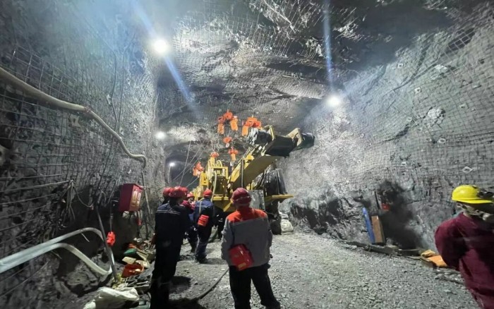 安博首页_安博anbo(中国)XTR7/360掘进机在矿下展开了一场硬碰硬的较量,平均两小时进尺1m的施工效率,引来现场采矿工作人员的围观。
