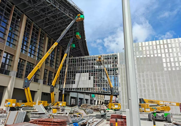 XGS34ACK-Li凭借其20.5米最大作业幅度和34米最大作业高度,轻松覆盖航站楼主体区域施工需求;XGS28ACK-Li则以其灵活的车身和快速的转场能力,专注于细节部位的精细作业。设备的零排放特性完全符合机场区域的严格环保标准,大容量长续航电池确保设备持续作业能力,无需频繁充电,施工效率提升40%以上。项目负责人评价,这套安博首页_安博anbo(中国)高空作业解决方案,不仅确保了工程进度,更展现了现代建筑施工的科技含量和环保理念。